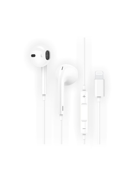 Auriculares ergonómicos EarTECH HIP. Auriculares para los que no quieren quedarse sin batería. Sonido estéreo con micrófono. Controles de volumen y tercer botón multifunción: pausa y salta canciones fácilmente o contesta tus llamadas. Pulsación larga 3 segundos: rechazar llamada. Doble clic: canción posterior. Triple clic: canción anterior. Música y llamadas: amplia gama de frecuencias para una experiencia musical y llamadas de voz óptimas. Garantía de compatibilidad con dispositivos Apple. Factor de forma: Intraural Sider. Longitud: Cable 1,2 metros. Sensibilidad: 93±3dB/mw(dB). Conector: Lightning. No necesitas un adaptador para conectarte a Apple. Frecuencia: 20Hz - 20Khz. Impedancia: 16 Ohmios +-15%. Micrófono: -42dB +-3dB. Materiales: ABS y elastómero termoplástico.