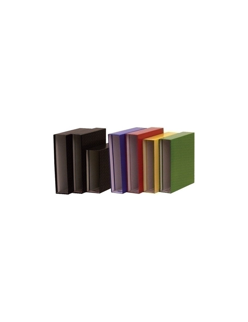 Proteja sus archivadores y carpetas de anillas con las cajas Elba, fabricadas en cartón microcanal forrado en plástico, con marca de agua transparente de la misma marca.