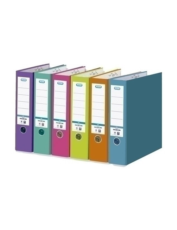 Archivador de palanca con exterior fabricado en plástico e interior de papel, con cantoneras metálicas, rado, mecanismo de aluminio, tarjetero en el lomo, etiqueta y ollao. Un archivador en color pensado tanto para archivar como para transportar información.