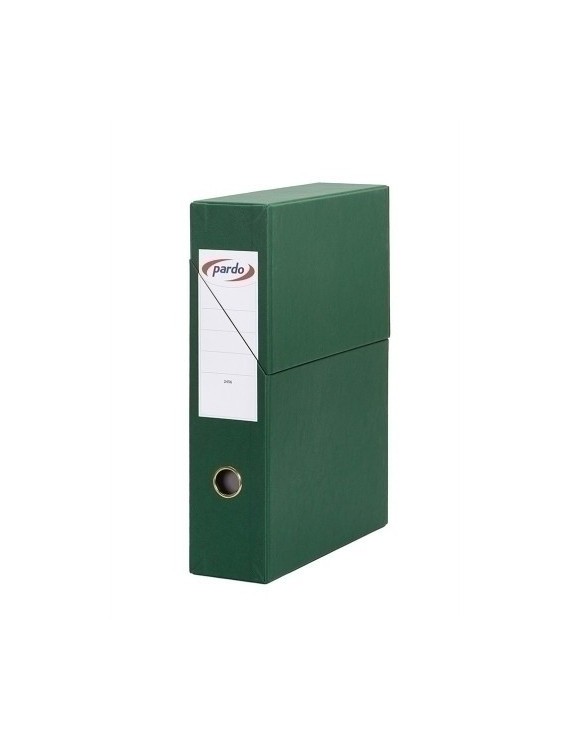 Caja De Transferencias Pardo Carton Forrado Pvc A4 Archivador Vertical 8 Cm Verde