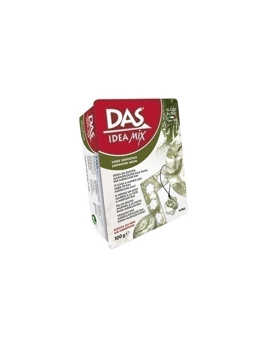 Pasta para modelar de base mineral que seca al aire. Se utiliza junto con Das blanco o terracota y permite crear efectos naturales y únicos. Permite crear espléndidas líneas de uno o más colores sobre Das blanco y terracota. Dermatológicamente testada y libre de gluten, la pasta de modelar Das Idea Mix es fácilmente lavable de las manos con agua tibia y jabón y se limpia de la mayor parte de tejidos en la lavadora a 40º. Cada envase contiene una pastilla de 100g, un folleto ilustrado completo con instrucciones y un contenedor con cierre hermético para mantener el producto en perfectas condiciones incluso después de estrenarlo.