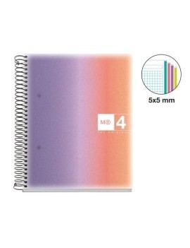 Cuadernos de tapa extradura de polipropileno traslúcido de 700 micras; esquinas redondeadas; espiral con cierre Coil-Lock; interior rayado en azul con margen; y 80 hojas de papel súper resistente extra blanco de 90 g/m², con certificado FSC®. Indicador de rayado en la tapa para una mejor identificación (liso, horizontal, pauta 2,5 o pauta 3,5).