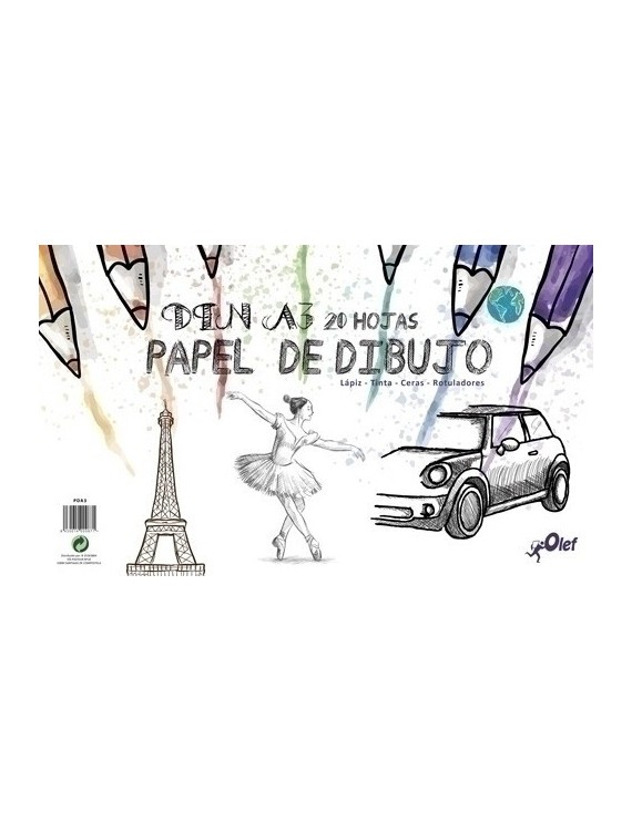 Bloc de dibujo básico encolado con 20 hojas de 130 gramos de gran calidad en su interior. Ideal para dibujar con lápiz, tinta, ceras y rotuladores, tanto en casa como en ámbito escolar.