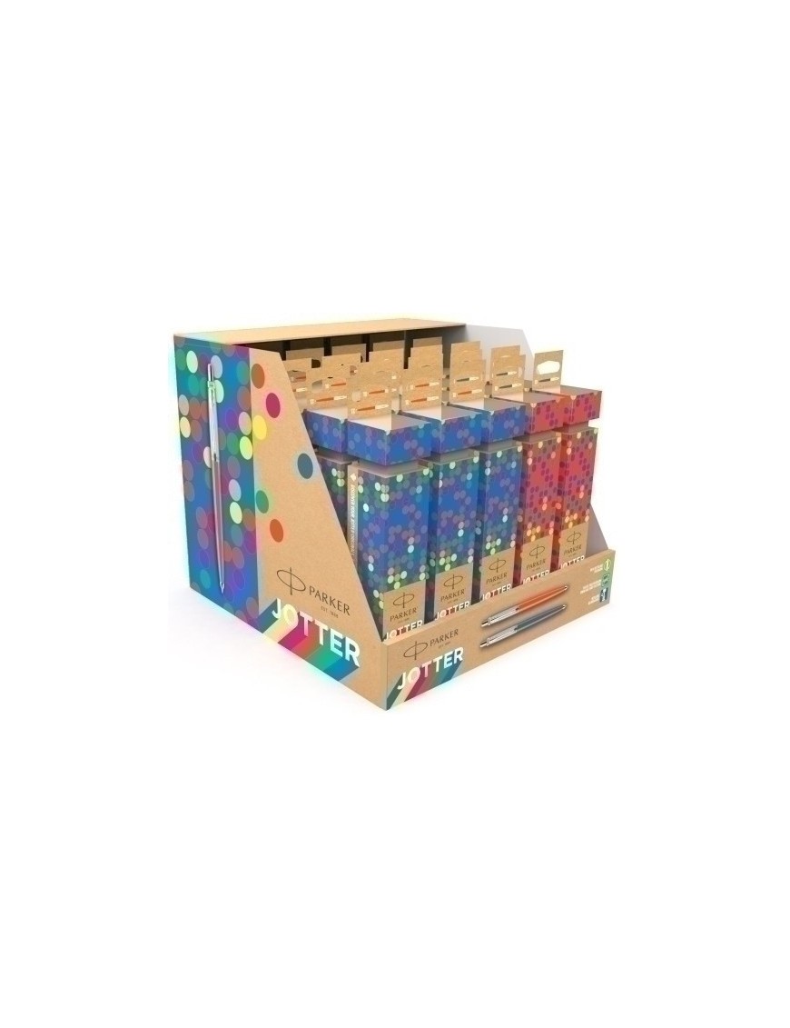 Expositor con 25 bolígrafo recargables con recambio de bolígrafo Parker Quinkflow® (punta media, tinta azul), en caja individual. 2 colores exclusivos (rojo bermellón y azul Denim) para celebrar cualquier ocasión. Embaladas con un embalaje 100 % reciclable y sin plástico.