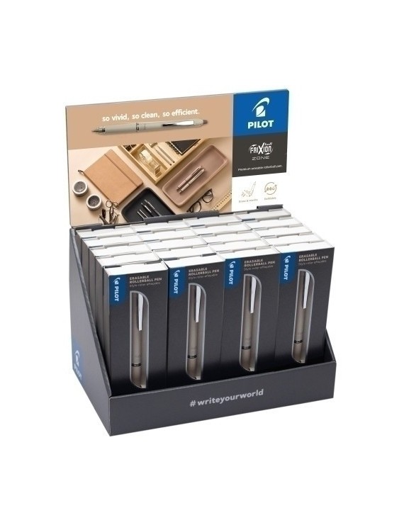 El FRIXION más adulto. Un increíble diseño, elegante y cuerpo tendencia cool con tinta borrable FRIXION. No mancha el papel, no deja restos. Puedes escribir, borrar y volver a escribir todas las veces que sea necesario, con la pieza incorporada en el cuerpo del bolígrafo. Con grip de agarre que hace más confortable la escritura. Retráctil mediante el clip metálico. Mecanismo más silencioso. Punta 0.7 mm. Trazo 0.35 mm. Escritura media. Recargable. Se presenta en estuche de cartón.