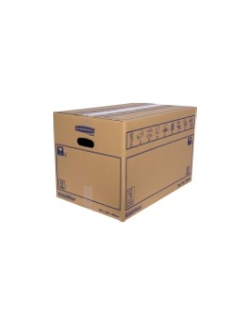 Caja de cartón ultra resistente con asas de transporte perforadas e iconos y áreas de marcado identificativos, que determinan su contenido. Una caja mercantil fabricada en cartón reciclado doble reforzado, con certificación FSC® y 100% reciclable. Ideal para mudanzas, embalaje o transporte de paquetería. Medidas: 300 x 500 x 300 mm.