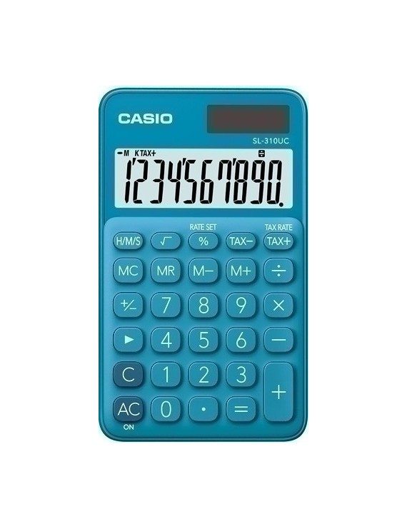 Pantalla LC extra grande de 10 dígitos, con teclas de plástico y alimentación solar/batería. Funciones: cálculo de porcentajes, margen de beneficio, cálculo de unidades de tiempo, cálculo de impuestos, 4 teclas de memoria, subdivisión en miles, tecla de símbolo +/-, tecla de corrección rápida y raíz cuadrada. Dimensiones: 8 x 70 x 118 mm.