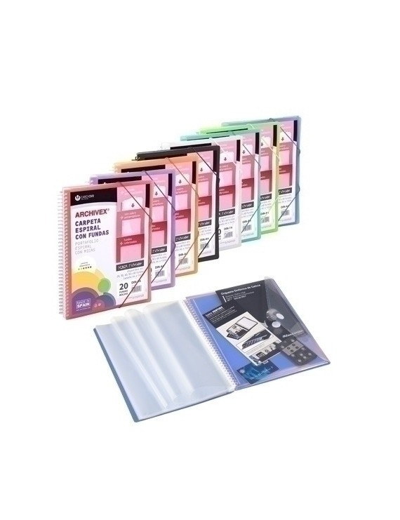 Carpeta personalizable de fundas con refuerzo en polipropileno (calidad extra), espiral, canguro, cierre con goma elástica y sobre de polipropileno con cierre de velcro y solapa en el interior. Una carpeta para presentar tarifas, catálogos y otros documentos.