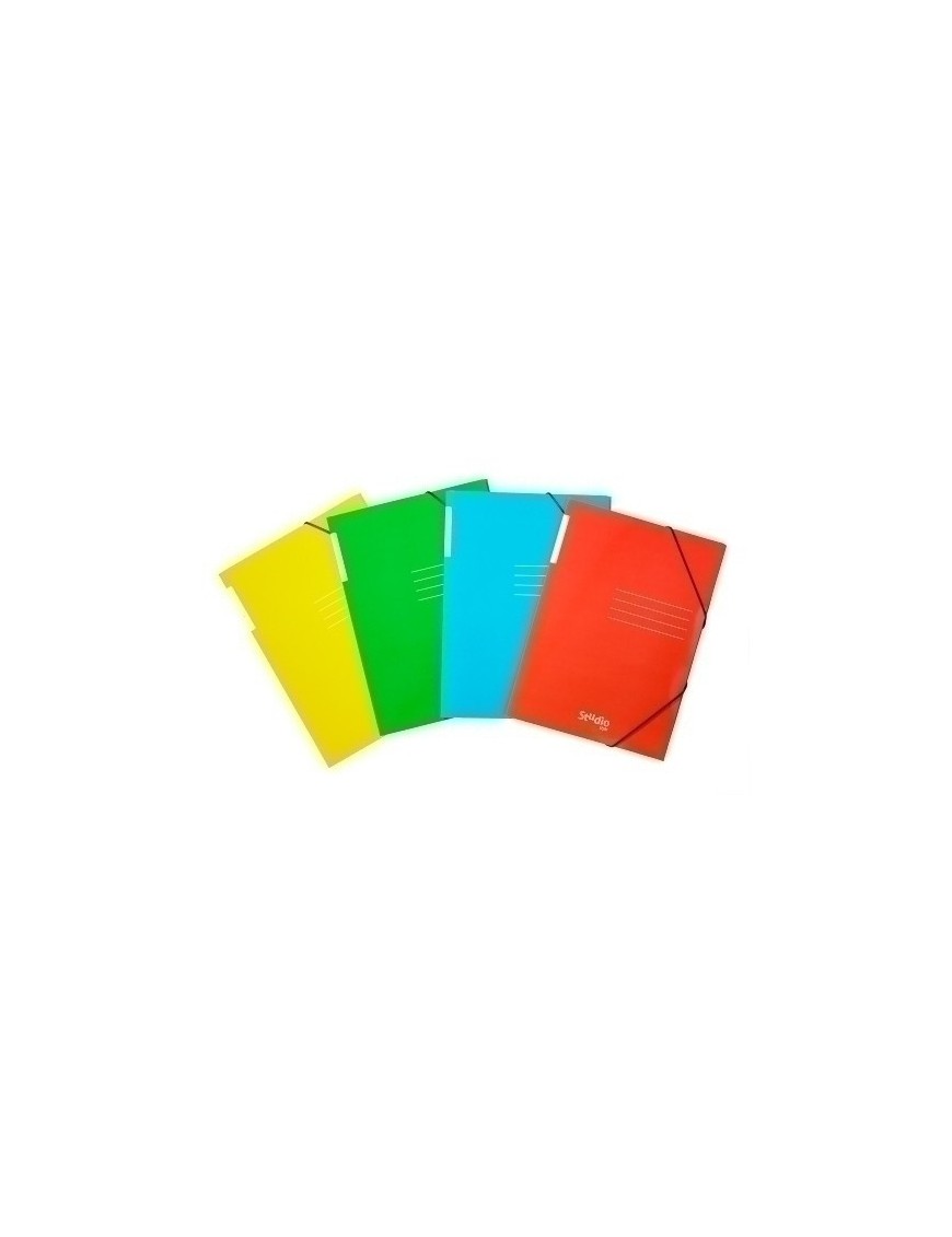 Carpeta de gomas y solapas, de la serie "studio style", con etiqueta en el lomo y líneas impresas en portada, fabricadas en cartón brillo. Ideales para clasificar y ordenar tus apuntes o documentos.