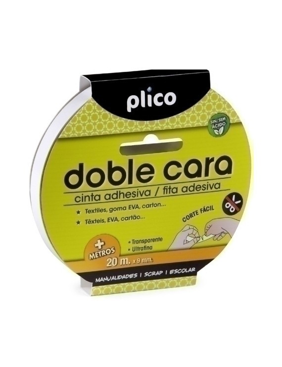 CINTA ADHESIVA DOBLE CARA PLICO rollo 9x20 BLANCO