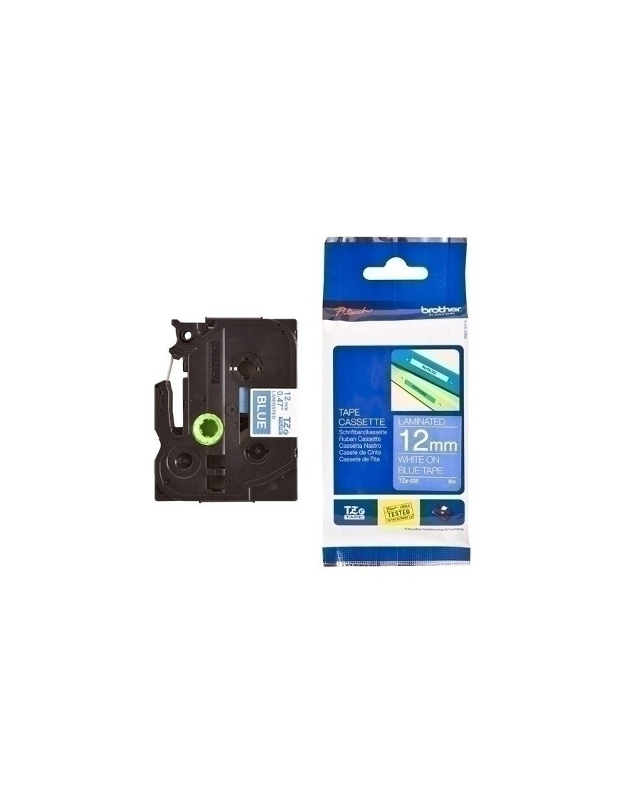 Cinta De Rotular Brother Laminada 8M 12Mm Blanco Sobre Azul
