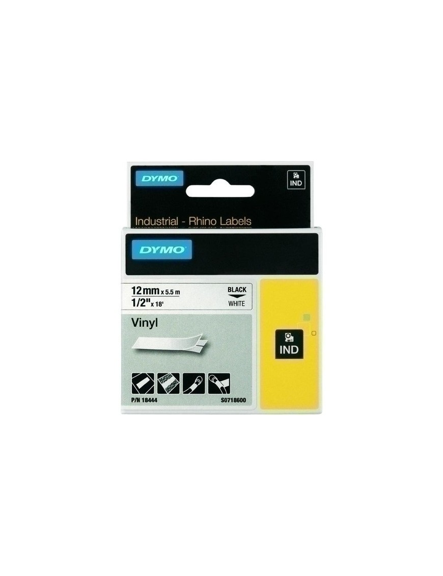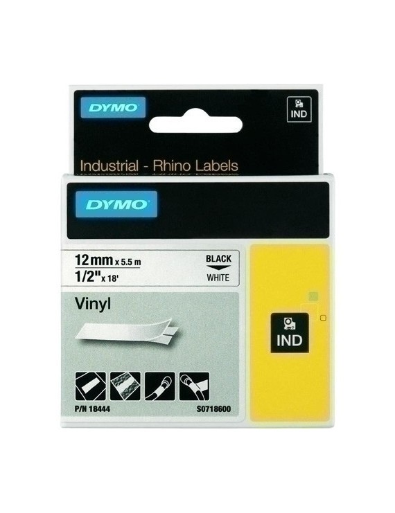 Cinta De Rotular Dymo Rhino Id1 Vinilo 5,5M 12Mm Negro Sobre Blanco (18444)