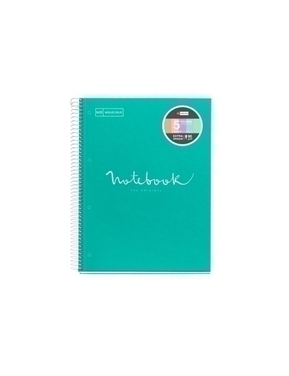 Bloc de espiral con cierre coilock, cubiertas de cartón forrado con plastificado brillante e interior formado por hojas de papel extra opaco, microperforado de 4 taladros, con bandas de color (24 hojas por color) y cabecera para títulos. Un bloc para llevar todo organizado, con certificación FSC.