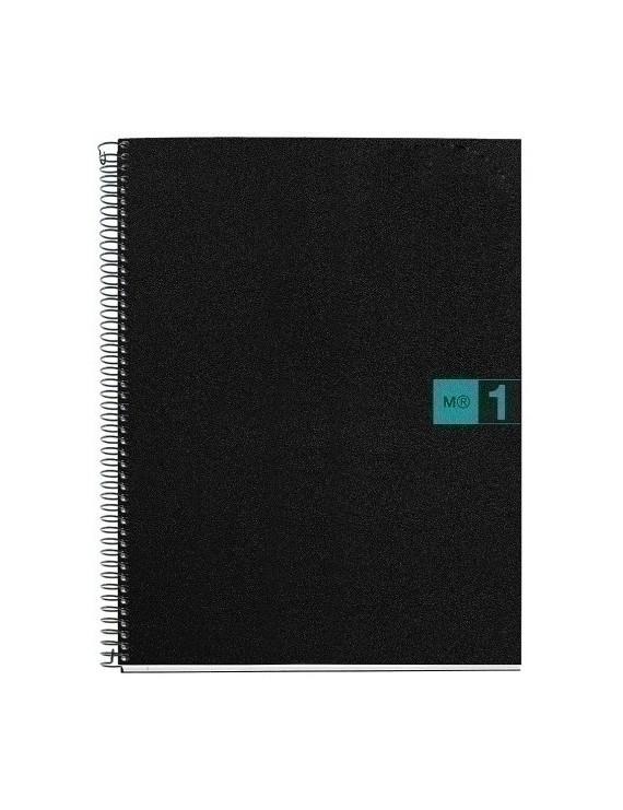 Bloc de espiral "Basic" con cierre coilock, cubiertas de polipropileno opaco de 0,8 mm e interior formado por hojas de papel extra opaco, microperforado de 4 taladros, con banda de color y cabecera para títulos. Un papel que evita que la tinta traspase, con certificación FSC.