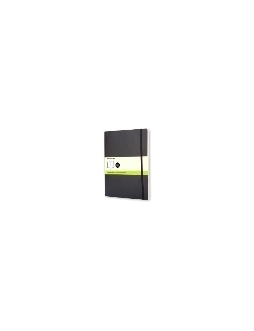 Libreta de tapa blanda con esquinas redondeadas, cinta marcapáginas y cierre elástico a juego con la portada, bolsillo interno expandible de cartón y tela; guarda delantera con aviso en caso de pérdida y papel de color marfil de 70 g/m², sin cloro. Contiene la historia de Moleskine en su interior.