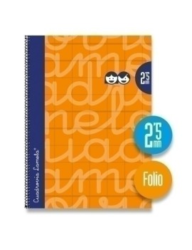 Libreta grapada con cubierta y contracubierta, realizadas en cartulina plastificada de 275gr/m². Su interior cuenta con 48 hojas con rayado azul y margen, en papel extra de 90 gr./m². Indicador de color en el anverso y código de barras impreso en el reverso.
