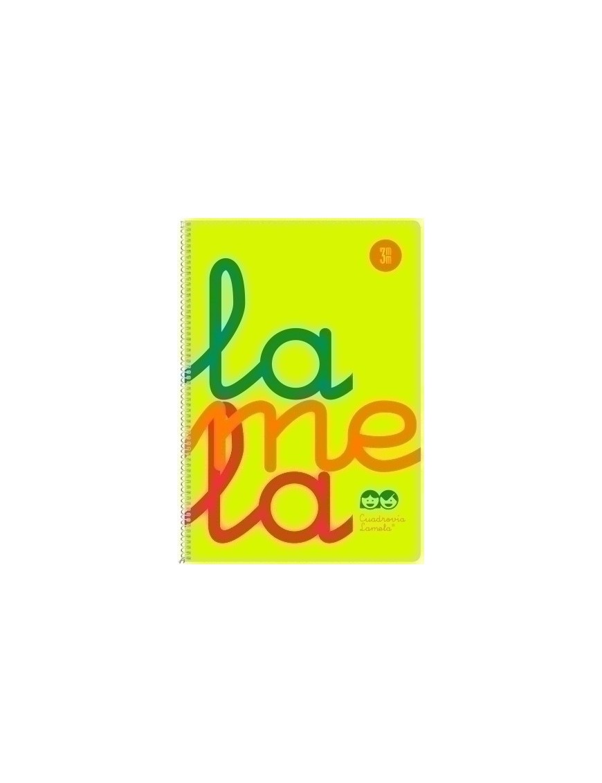 Cubierta de polipropileno flúor, espiral sencilla con lazo vuelto, lacado en blanco y un interior de 80 hojas, en papel offset blanco extra de 90 gramos, rayados con CUADROVÍA en tamaño folio y margen. Disponible en distintos colores.