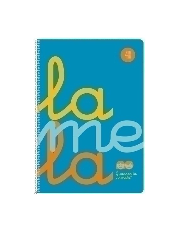 Cubierta de polipropileno flúor, espiral sencilla con lazo vuelto, lacado en blanco y un interior de 80 hojas, en papel offset blanco extra de 90 gramos, rayados con CUADROVÍA en tamaño folio y margen. Disponible en distintos colores.