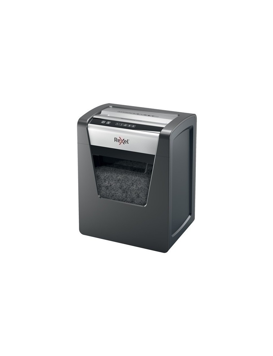 La destructora de papel Rexel Momentum X415 destruye hasta 15 hojas de una vez, funciona ininterrumpidamente durante 2 horas y es ideal para oficinas pequeñas. La tecnología anti-atasco del modelo X415 garantiza el funcionamiento ininterrumpido; P4, corte cruzado (partículas de 4 × 40 mm). Trituradora silenciosa con botones táctiles sencillos e intuitivos y una generosa papelera de 23 litros de capacidad. Destruye múltiples documentos, incluso con grapas o clips en las esquinas.