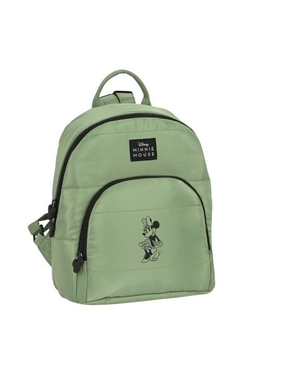 Mini mochila con bolsillo frontal con cremallera de gran formato. Doble tirador en cremallera principal para facilitar su apertura. Bolsillo interior con cremallera. Bolsillo trasero con cremallera. Hombreras ajustables con hebilla metálica. Asa de mano en la parte superior. Medidas: 300 x 250 x 130 mm.