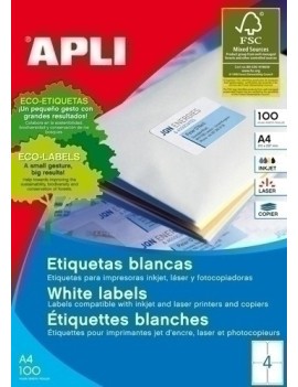 Etiquetas Adh.Impr.Apli A4 Blanca C.Rectos Caja 100H 210X297 Mm 100 Uds.(01281)