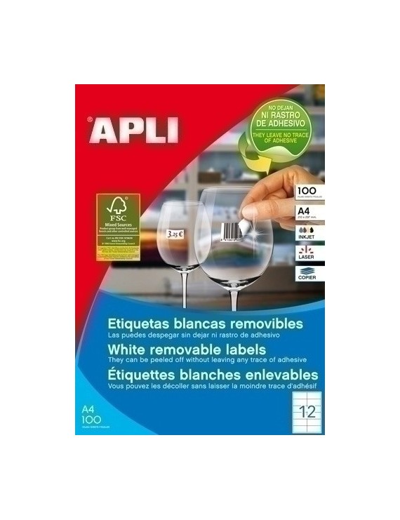 Etiquetas autoadhesivas removibles con cantos rectos y en color blanco, para impresoras Inkjet, Láser y Fotocopiadora. Se caracterizan por su versatilidad, flexibilidad y sencillez de uso. Se adhieren a cualquier superficie y pueden volver a despegarse sin dejar marcas ni residuos.