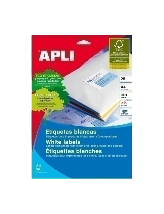 Etiquetas autoadhesivas permanentes con cantos romos, en color blanco; son perfectas para identificar envíos, objetos o paquetería, ya que se caracterizan por su versatilidad, flexibilidad y sencillez de uso. Aptas para impresoras Inkjet, Láser y fotocopiadora. Certificadas FSC®.