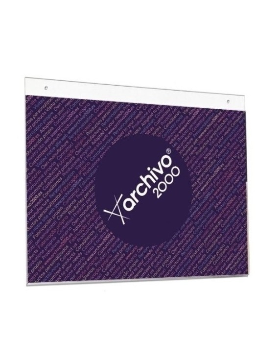 Expositor mural con agujeros pre-perforados para facilitar el montaje en la pared. Permite cambiar el documento sin necesidad de quitar el expositor de la pared.