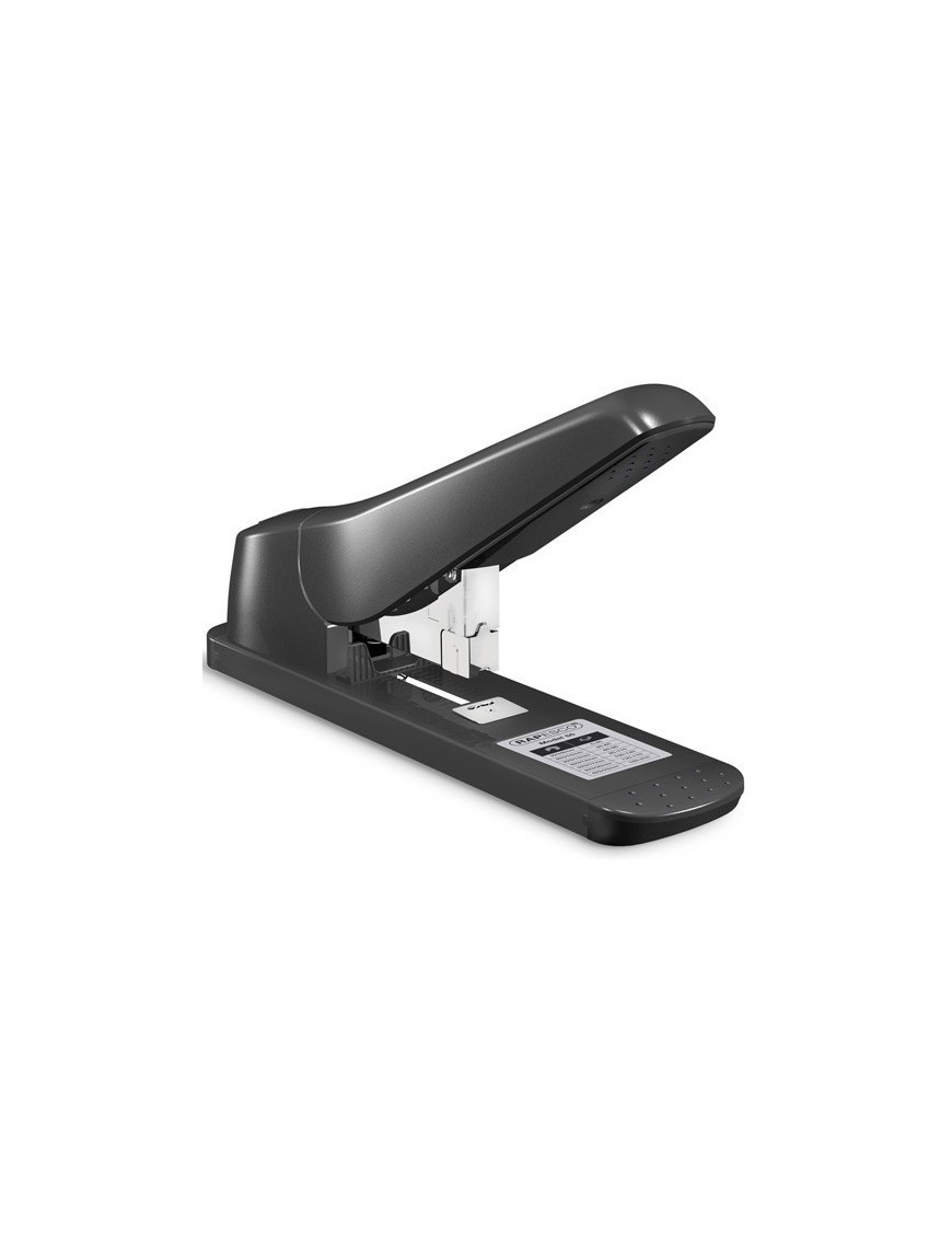 Grapadora de construcción metálica con recarga frontal, agarre contorneado, pivote central y botón de recarga, fácil de usar. Usa grapas 923/8-23. Tiene capacidad para grapar hasta 210 hojas de 80 gramos. 5 años de garantía.
