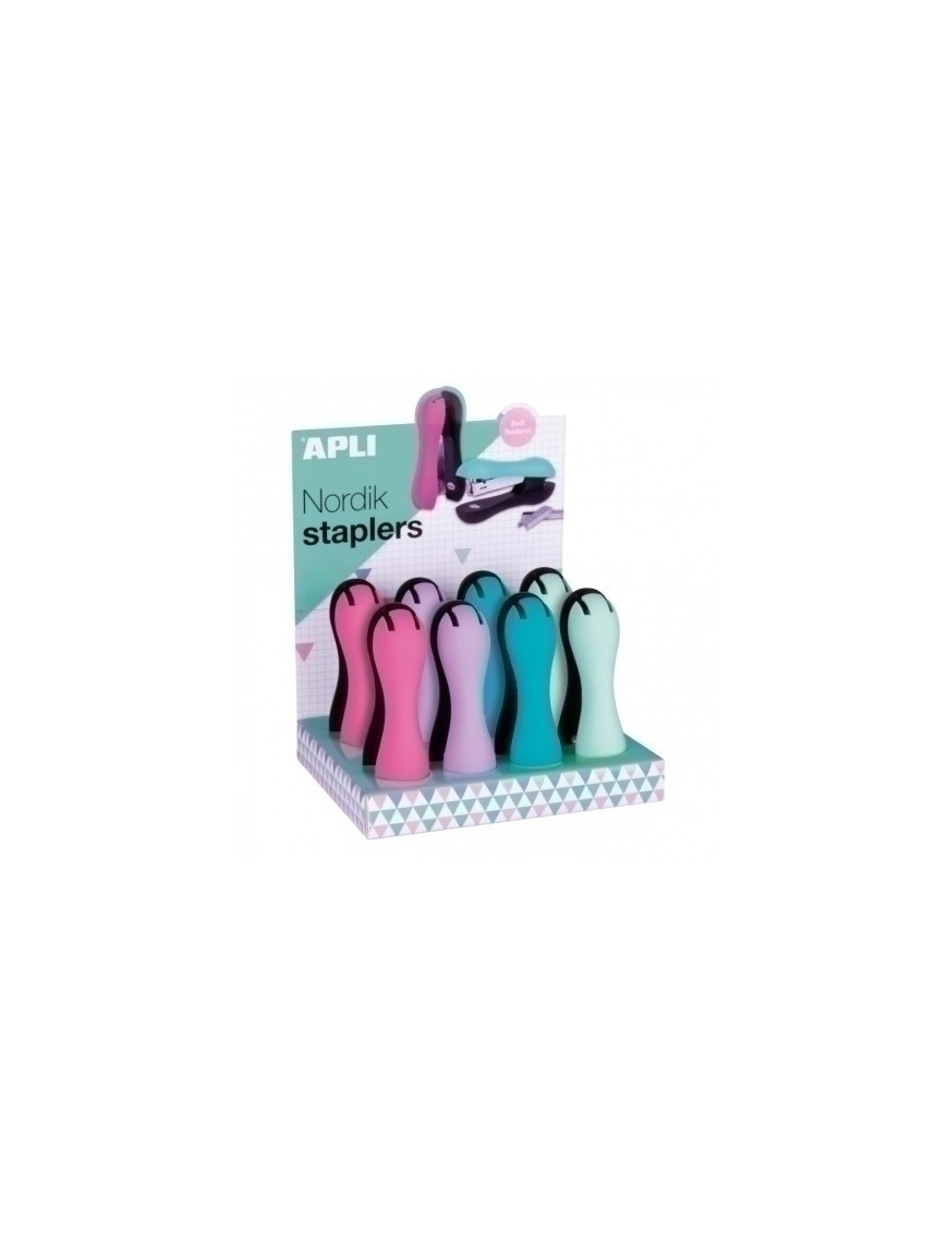 Expositor de grapadoras de diseño ergonómico con capacidad para grapar hasta 30 hojas. Apta para grapas nº22/6-24/6. Su tamaño y su diseño permiten la utilización con una sola mano o su orientación en posiciones diferentes (horizontal o vertical). Medidas: 65 x 135 mm.