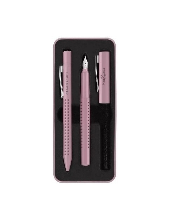 Conjunto grip 2010 de bolígrafo de punta M + estilográfica con pluma de acero, en estuche de regalo. Dos elegantes piezas con puntos de realce antideslizante en color que aportan un bonito contraste. Apto para cartuchos estándar y convertidores convencionales.