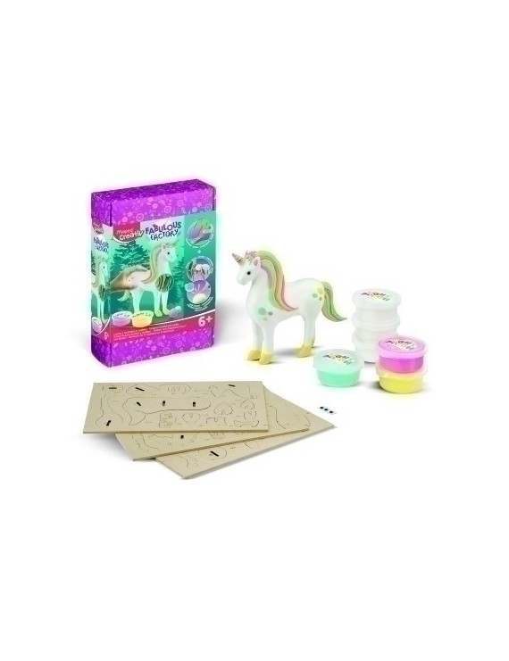 Unicornio para modelar y construir. Disfruta de momentos creativos montando tu puzle 3D de madera numerado y cúbrelo con la pasta ligera que se endurece al aire libre; el resultado será una sólida figura con la que podrás jugar y divertirte. Un juego que desarrolla la destreza y la motricidad fina de los más pequeños. Edad: + 6 años.