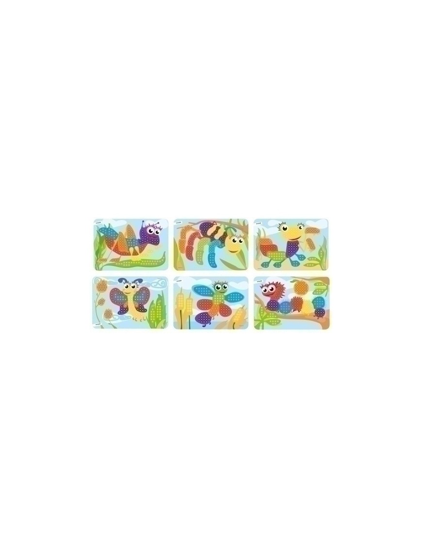Crea fantásticos mosaicos con la ayuda de las 6 divertidas escenas que trae en su interior, tan sólo colocando los pegs de colores en el lugar adecuado. Un juego educativo para aprender los colores y los números; y mejorar: la psicomotricidad fina, la orientación espacial, la atención y concentración, la creatividad y la memoria. De 3 a 6 años.