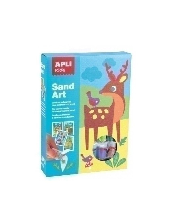 Juego para crear cuadros con arena de colores. Sólo hay que destapar la parte adhesiva (con la ayuda de la herramienta incluida en el pack) y repartir la arena en los diseños a colorear. Contiene: 4 fichas adhesivas con los diseños preimpresos en color, 10 botes de arena de diferentes colores, 1 bolsa de arena blanca y una herramienta de plástico. Un juego para estimular la psicomotricidad fina, impulsar la creatividad y mejorar la confianza y seguridad en ellos mismos. Edad: + 4 años.