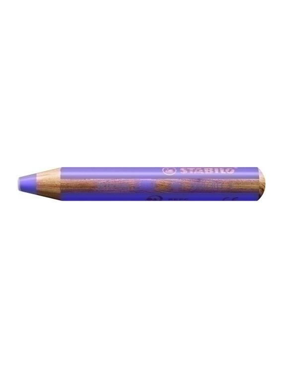 Lápices de colores acuarelables con mina XXL de 10 mm de diámetro, para niños de más de 3 años. Lápices fabricados con madera certificada 100% PEFC, perfectos para colorear grandes áreas o utilizar en técnicas como: raspado, pastel, secador de pelo, acuarela, platilla o frottage. Un todoterreno 3 en 1 para usara como lápiz de color, cera o acuarela, suficiente permanencia o resistencia a la luz.