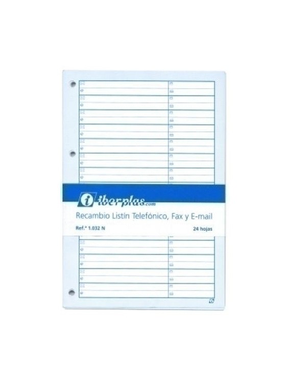 Recambio para listín telefónico, hojas con multitaladros en papel de gran resistencia, con identificación de dirección, teléfono, fax y e-mail. (para la referencia 1037)