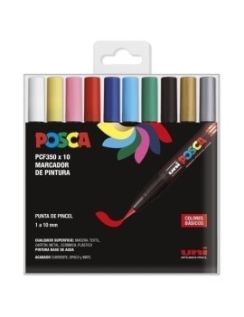 Punta de poliéster (forma de bala). Ancho de trazo de 1,8 - 2,5 mm. Cuerpo de plástico (PP). Marcador de pintura no permanente. Tinta pigmentada base al agua. Pinta sobre cualquier superficie y es muy resistente a la luz, es inodoro, las manchas se pueden lavar con agua, desapareciendo inmediatamente, ideal para cartelería, decoración, escaparatismo, posters, etc. No tóxico.