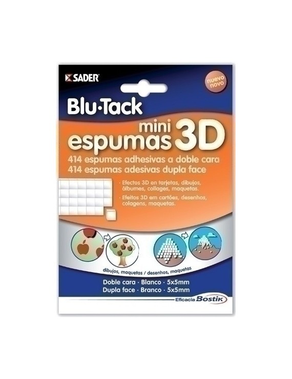 414 mini espumas blancas adhesivas de doble cara de 5×5 mm, libres de ácido. Perfectas para conseguir efectos 3D en manualidades, artesanía, tarjetas de decoración o para pegar fotografías, papeles, poster, tarjetas de comercio, etc ..