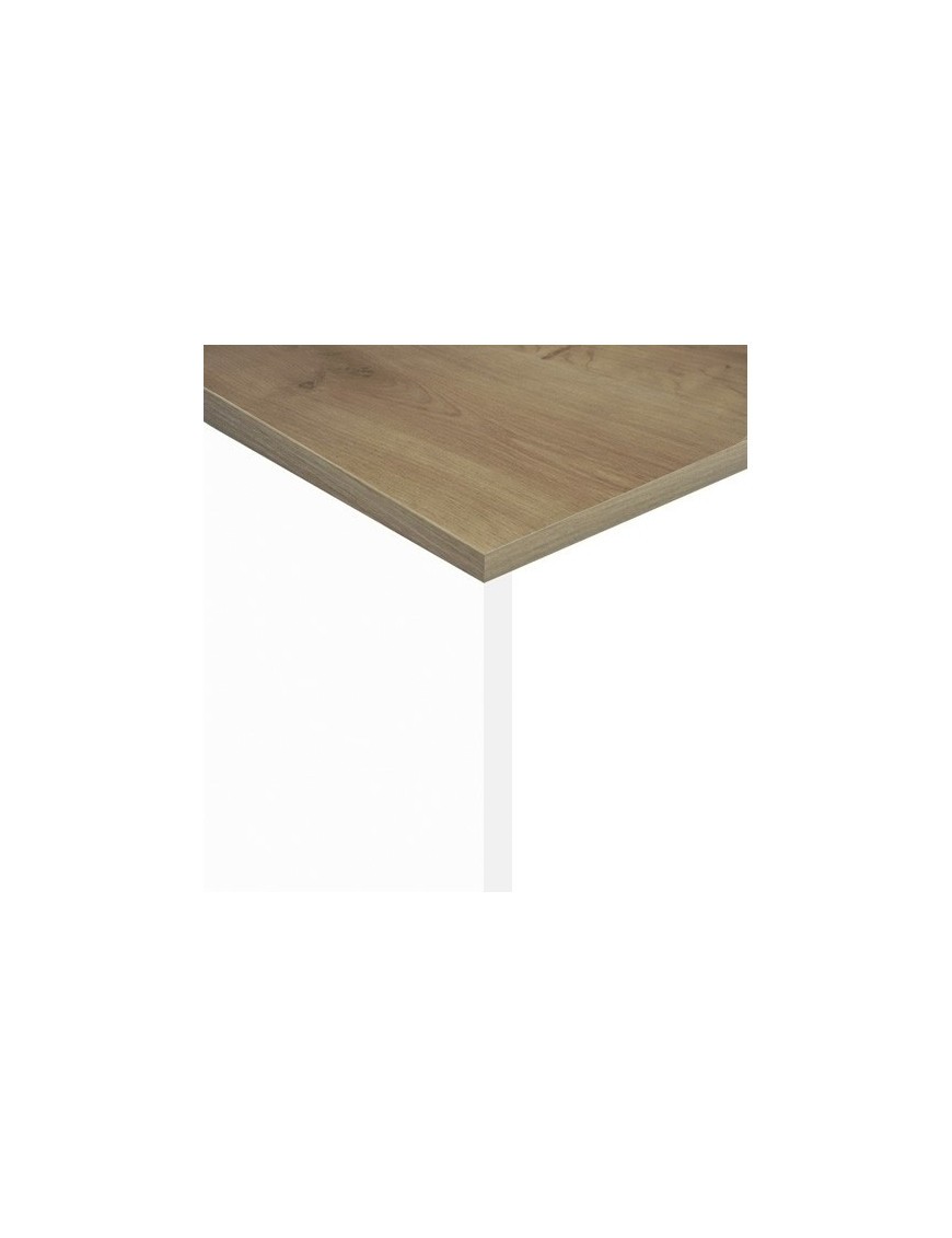 Compuesta de pies realizados en melamina de 25 mm de grosor, con canto de 1mm del mismo color, faldón en melamina de 19 mm de grosor con canto de 1mm del mismo color, y tablero de melamina de 25 mm de grosor con canto de 1mm de grosor del mismo color. Disponible en diferentes acabados. Incluye niveladores de regulación en altura de hasta 2 cm.