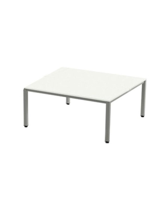Estructura realizada en tubo de acero de 40x30mm de sección fijados entre ellos y a los 4 pies mediante 4 pletinas de aluminio fundido. Los pies son de tubo de acero de 60x60mm de sección e incorporan sistema de regulación de altura hasta 50mm. Todo ello pintado en epoxy gris RAL9006. El tablero es de melamina de 25mm de grosor color según modelo canteado en PVC de 2mm del mismo color.
