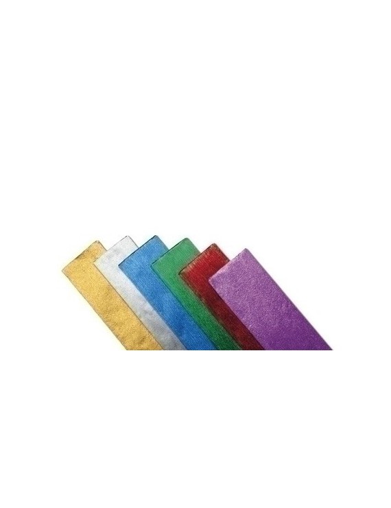 Crepado contraencolado con lámina de aluminio. Presenta gran resistencia a la decoloración, al estiramiento y a la rotura. Gramaje: 65g. Gama de 6 colores. Reciclable 100% y biodegradable. Indicados para fiestas, celebraciones, disfraces, regalos, decoraciones, manualidades, composiciones, etc