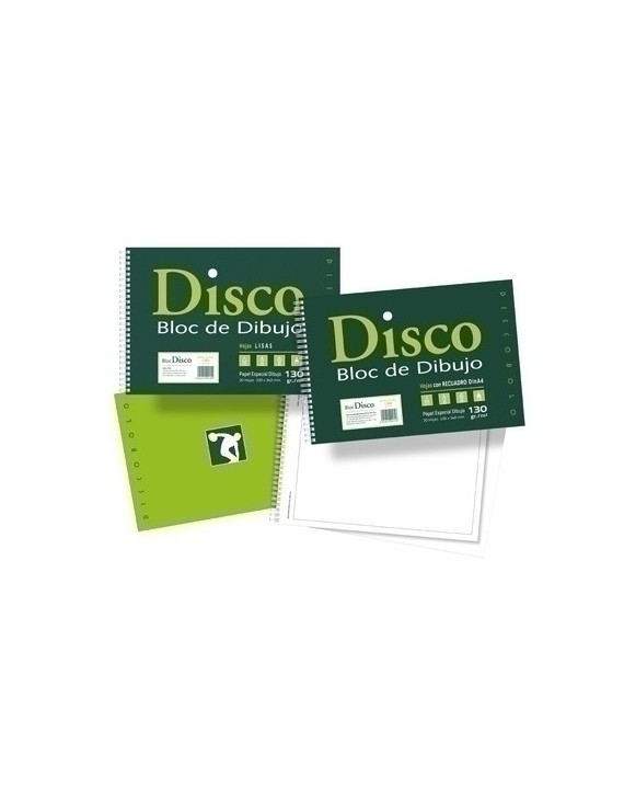 Bloc dibujo DISCO con tapa y contra Discobolo, espiral Wire`o y papel de 130 gramos. Ideal para lápiz, tinta, rotulador y técnicas secas Medida: 230 x 340 mm.