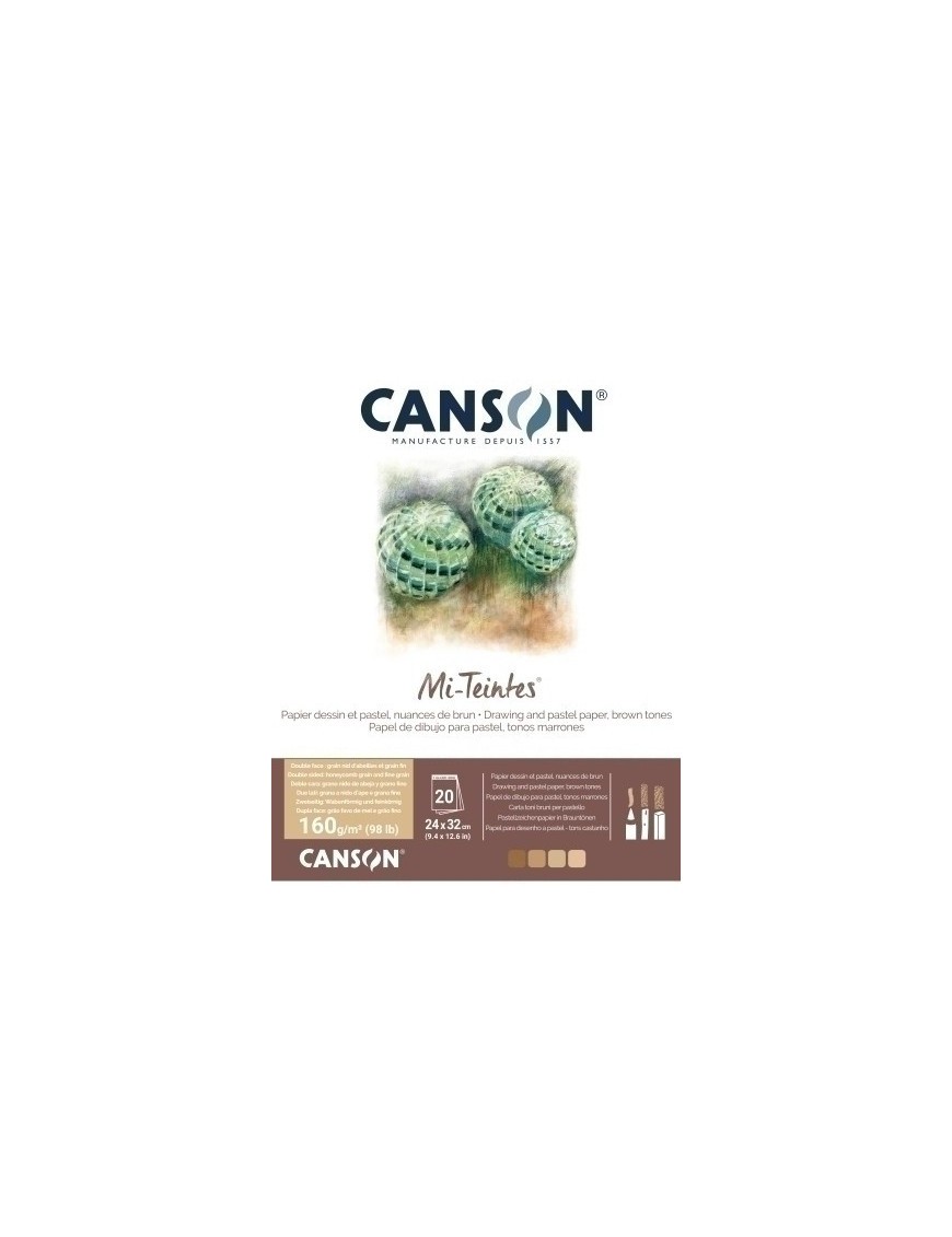 Bloc encolado por el lado corto con papel de 160 g/m² en colores surtidos. Mi-Teintes® es un papel con dos caras (estructura de nido/ grano fino) con gran resistencia al envejecimiento del papel. Es adecuado para: pastel, tiza, carboncillo y sanguina. Bloc con 5 colores surtidos: amarillo pastel, cáñamo claro, marrón oscuro, marfil y gris marrón. Certificado FSC.
