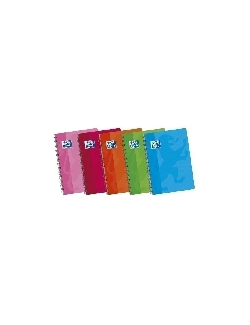 Bloc Oxford de tapa blanda de cartón de 500gr./m2 plastificado. Con cantos redondeados. Los cuadernos Oxford tienen un papel Optik Paper exclusivo! Este papel marca la diferencia con el resto porque: Es papel de 90 gramos muy resistente. La tinta no traspasa al otro lado del papel. El lápiz o bolígrafo se desliza suavemente por el papel. Papel de alta blancura que garantiza el contraste entre papel y tinta. Encuadernado con espiral de alambre negro con coil-lock. 5 colores surtidos. Tamaño cuarto: 155 x 215 mm. 80 hojas.