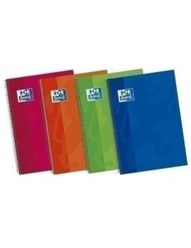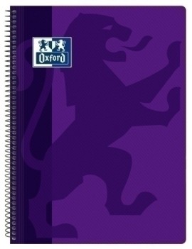 Cubierta extra dura de cartón forrado con papel impreso a color y plastificado. Espiral sencillo con lazo vuelto, lacado negro. Interior en papel offset blanco extra de 70 g/m con margen. Rayados con CUADROVÍA en varios tamaños. 80 hojas. Disponibles en folio y cuarto y distintos colores.