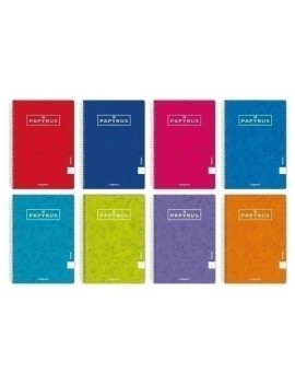 Cubierta de polipropileno flúor con espiral sencilla de lazo vuelto lacado en blanco e interior de 80 hojas, en papel offset blanco extra de 90 gramos; rayado CUADROVÍA y tamaño cuarto con margen. Disponible en distintos colores.