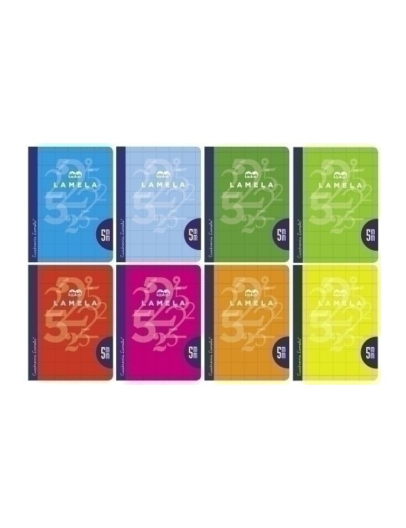 Libreta grapada en tamaño cuarto con cubierta y contracubierta en cartón plastificado impreso en 8 colores surtidos. En el interior cuenta con 50 hojas de papel Offset blanco extra de 70 gramos con margen y rayado Cuadrovía.