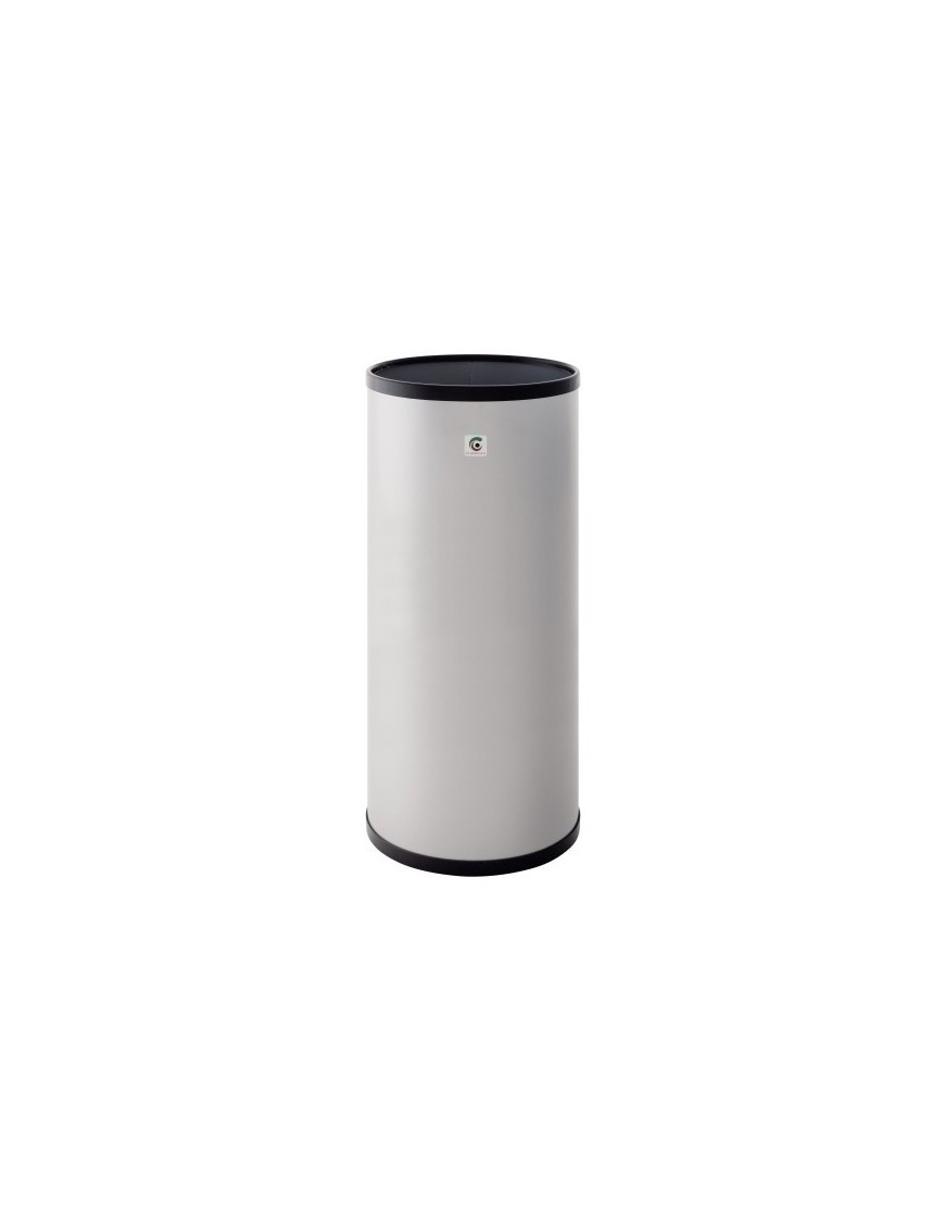Paragüero metálico con embellecedores y recogeaguas interior de polietileno. Fabricado en chapa blanca laminada en frío (calidad AP02). Medidas: 510 x ø 215 mm.