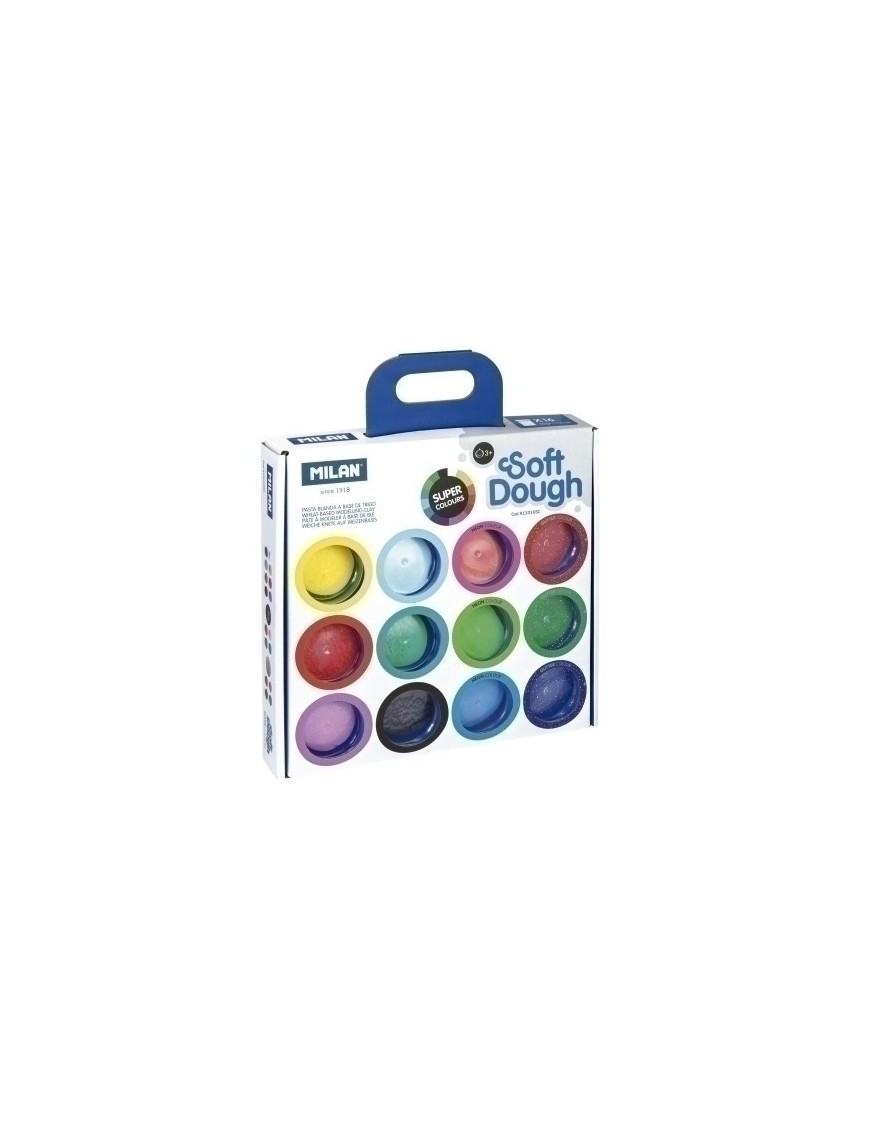Maletín con pasta blanda a base de trigo en colores surtidos (contiene gluten). Contenido del maletín: 16 botes de 30 g en colores surtidos: 8 colores básicos (blanco, amarillo, rojo, lila, violeta, azul, verde y negro); 4 colores neón (amarillo, verde, rosa y azul) y 4 colores Glitter (naranja, verde, rojo y azul). Pasta Soft Dough consistente, elástica y fácil de modelar. Se pueden crear nuevos tonos combinando dos o más colores. No deja residuos en las manos.