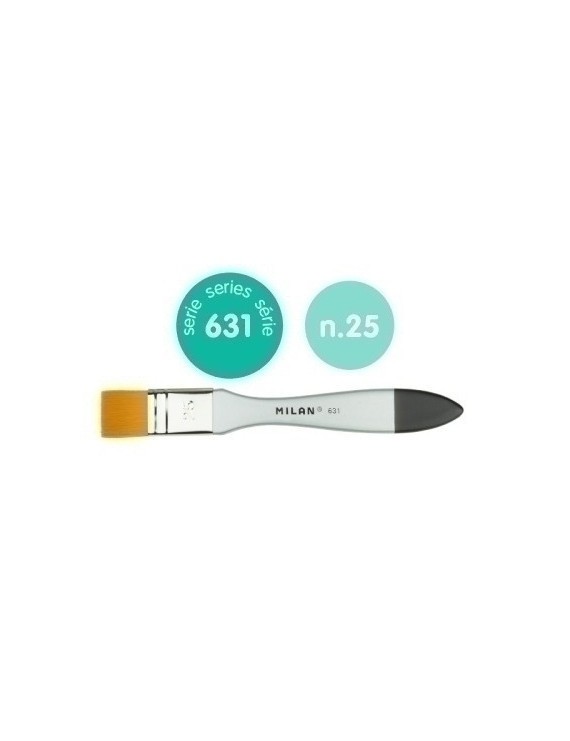 Paletina con mango corto de madera barnizado en color plateado, virola niquelada y pelo sintético de 25,2 mm (pincel de 185 mm de largo). Un accesorio de pintura para acrílico, acuarela, técnicas húmedas y óleo.